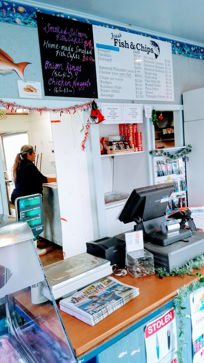 The menu shines with exceptional fish and chips, featuring a variety of local catches, including snapper and creamy mussels. Diners rave about the quality, with one customer calling it a "10/10 A++" experience. Compliments also extend to the café’s inviting atmosphere, where you can relax with a coffee!